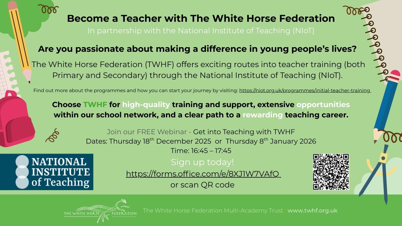As part of The White Horse Federation, we passionately believe that by working together, the children are able to have a higher quality of education, and that as colleagues, we will also benefit from and reap the rewards of a values-based organisation where no one is left behind.